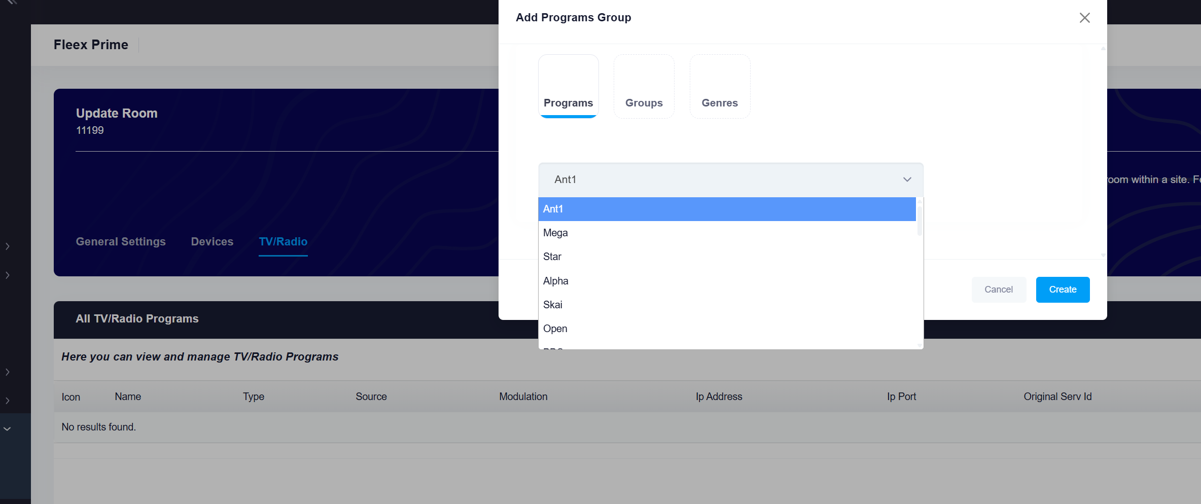 Δεν θα επρεπε να φαινονται τα καναλια που δεν ειναι διαθεσιμα για το site στο drop down menu.