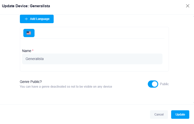 Στα Genres, οταν πατας το "Add Language" button για να μπει γλώσσα, δεν γίνεται τίποτα.