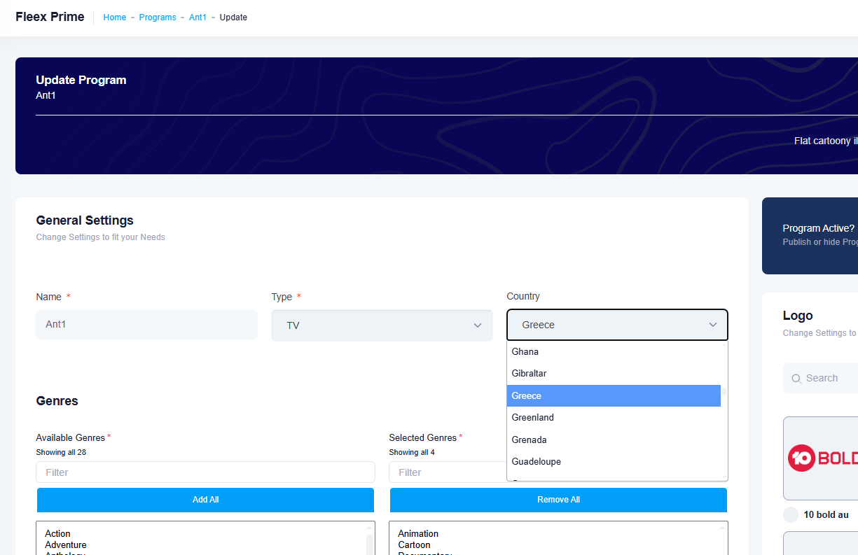 In country field when you are creating a new TV channel does not work