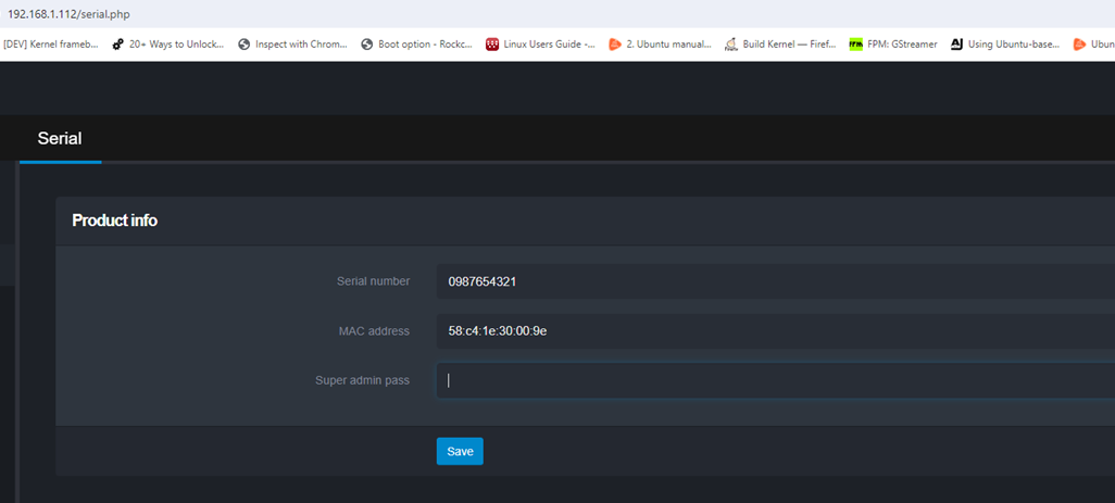 o Set serial number of the device. (It will be provided by us) For the demo use: 1112240001